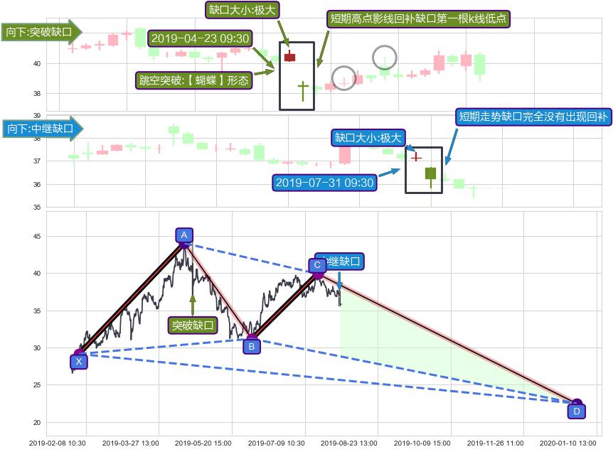 ➢ 【蝴蝶】形态 🔜 中继缺口 🔜 突破缺口 综合量化分数:42.14 【偏空】