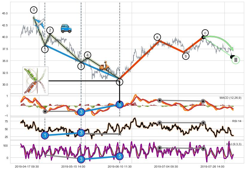 ➣ 1,3,5驱动浪MACD, RSI, KDJ走势都出现【常规背离】反转信号增强