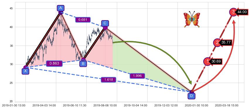 ➣ 未完成【蝴蝶】形态起点X: 01-30:13, 已到达C点: 07-17:09, 预测最终D点: 12-30:12, 共1362交易小时
