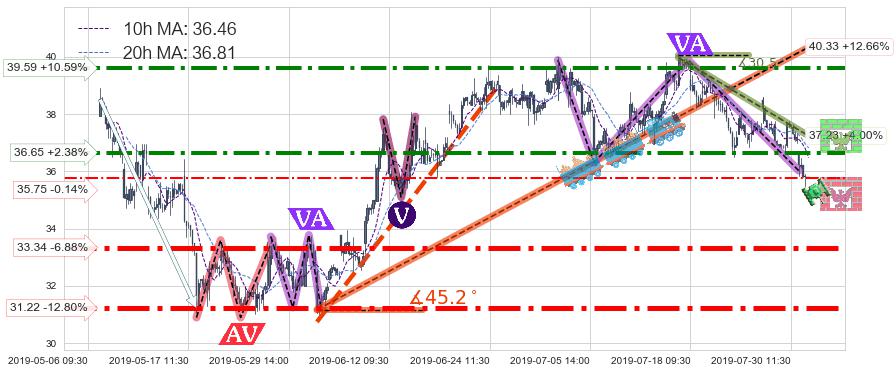 ♘ 阻力价格位39.59,可信任强度80.82%,距离最后交易2019-07-31 15:00形成的收盘价格35.80相差 +10.59%