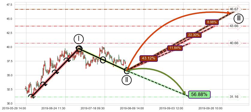➣ 循环浪继续向上【平均值】位置(09-20:13, 43.66),匹配聚类样本比例51.72%, 可能性概率22.30%