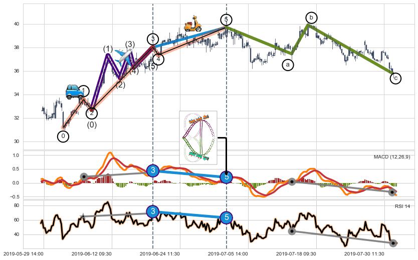 ➣ a,c调整浪MACD, RSI, KDJ走势都【未出现】背离,abc走势延续, 5浪反转概率增强