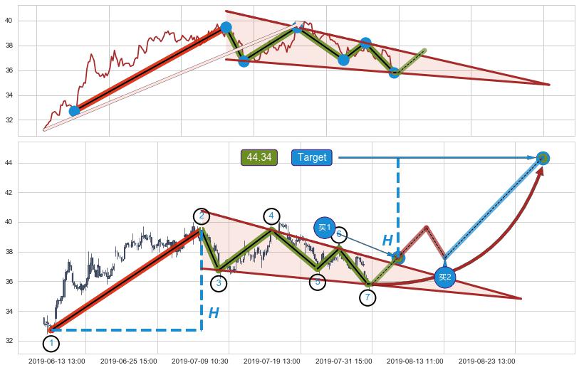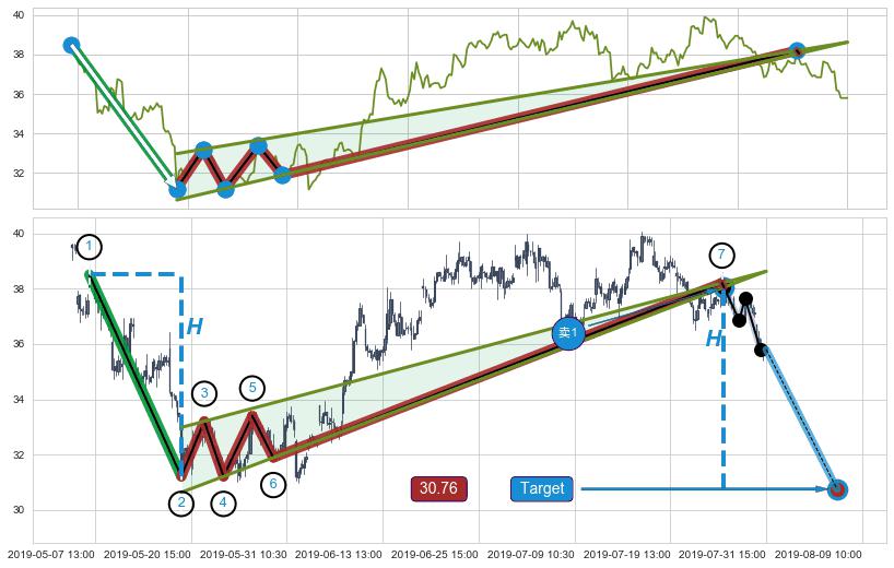➢ 最小中继整理涨幅→𝐇: 6.75 (𝐇楔型旗杆的长度:楔型起点→顶点)