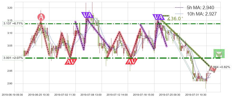 ♘ 阻力价格位3.001,可信任强度83.92%,距离最后交易2019-07-31 15:00形成的收盘价格2.940相差 +2.07%
