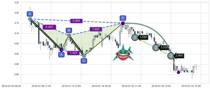 ➣ 已完成【鲨鱼】形态起点X: 07-05:09, 终点D: 07-19:11, 共63交易小时