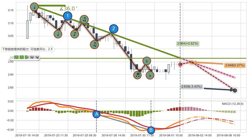 ➣ 预测:2019-08-06 10:00,【继续下探】稳定目前下跌趋势的前提下,预测价格:2.839