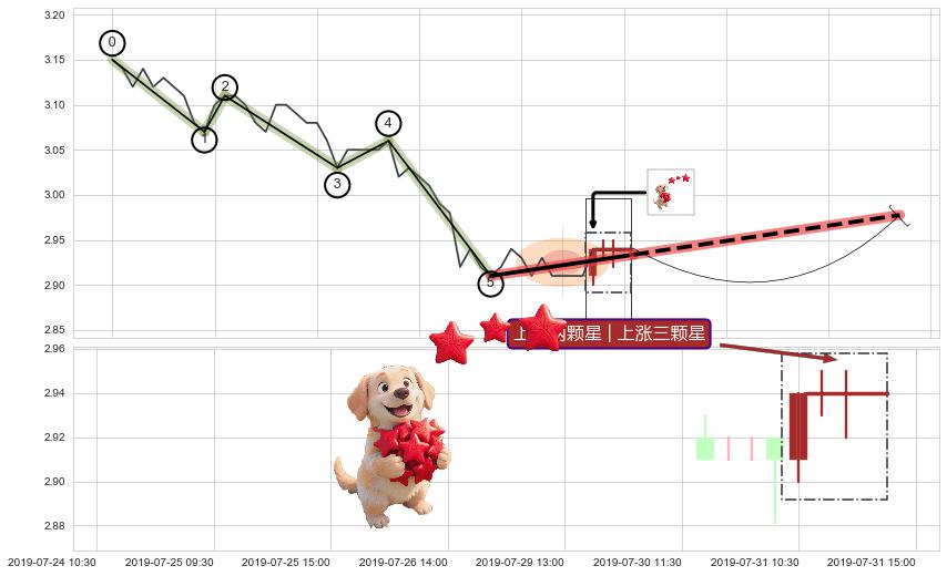 从2019-06-26 11:30至2019-07-02 11:30,共包含19个小时,阶段股价上涨2.98%,阶段股价变动位移路程比: 1 : 3