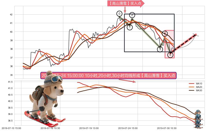 从2019-07-15 10:30至2019-07-31 15:00,共包含77个小时,阶段股价下跌-6.51%,阶段股价变动位移路程比: 1 : 5,下跌趋势角度: 53.9