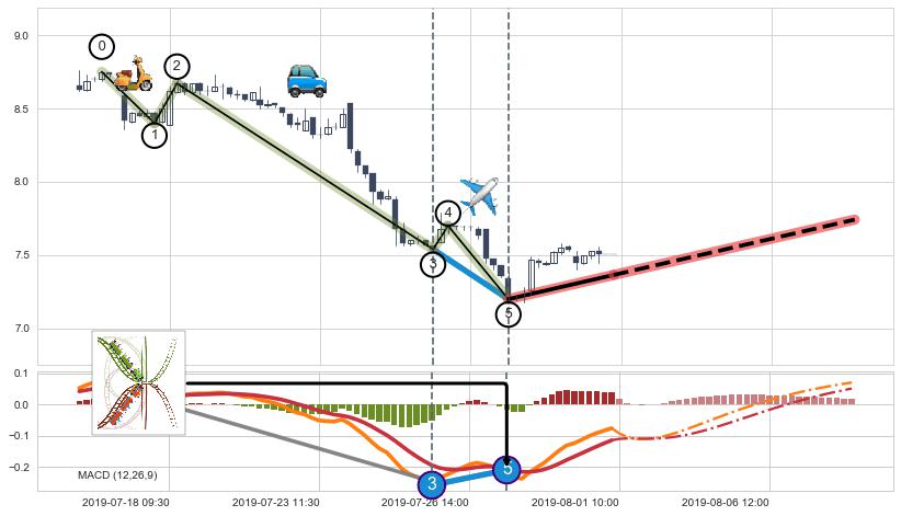➣ 市场信心【丧失】已在07-23:10突破由③⑤两个波谷提供的【支撑】 8.34 →突破颈线