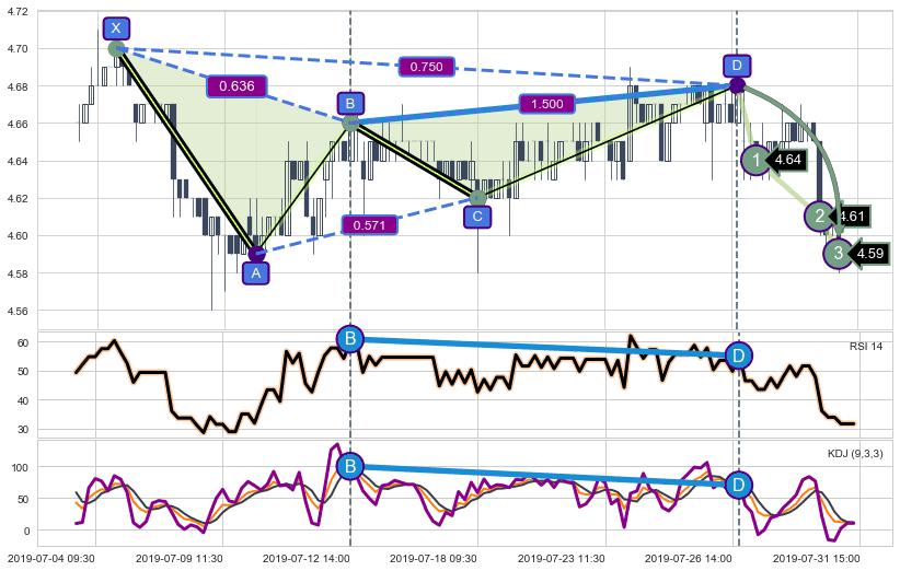 ➢ 谐波价格D点比B点高 ⤴,【KDJ】指标D点比B点低 ⤵️