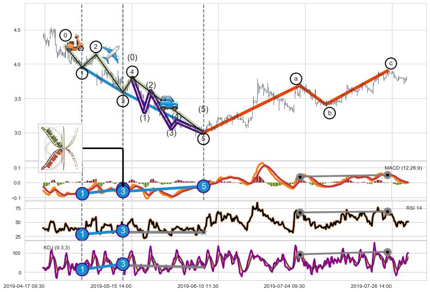 ➣ a,c调整浪MACD, RSI, KDJ走势都【未出现】背离,abc走势延续, 5浪反转概率增强