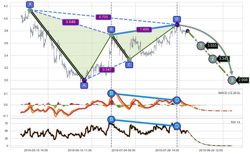 | 22 🅚:下跌两颗星 | 下跌三颗星 ➕ 📡:谐波伽利已到达d点:猜想c拉升到达d点后泄力性下沉下跌(均值回复) ☞ 看空信号 ⇥ 【🅚线】交织【图形】⇥ 综合量化分数: 39 | > |