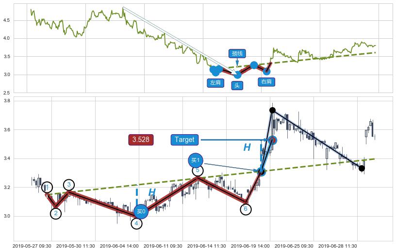 ➣ 【已确认突破】头肩底 起点:05-15:15,突破点:06-19:09,形态共140交易小时