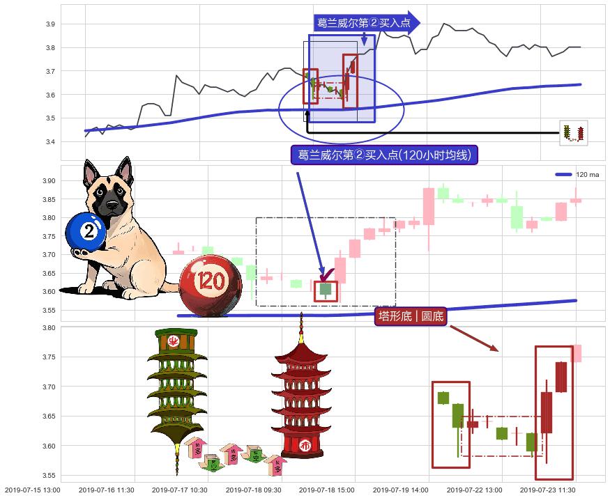 从2019-07-10 09:30至2019-07-31 15:00,共包含96个小时,阶段股价上涨11.23%,阶段股价变动位移路程比: 1 : 5