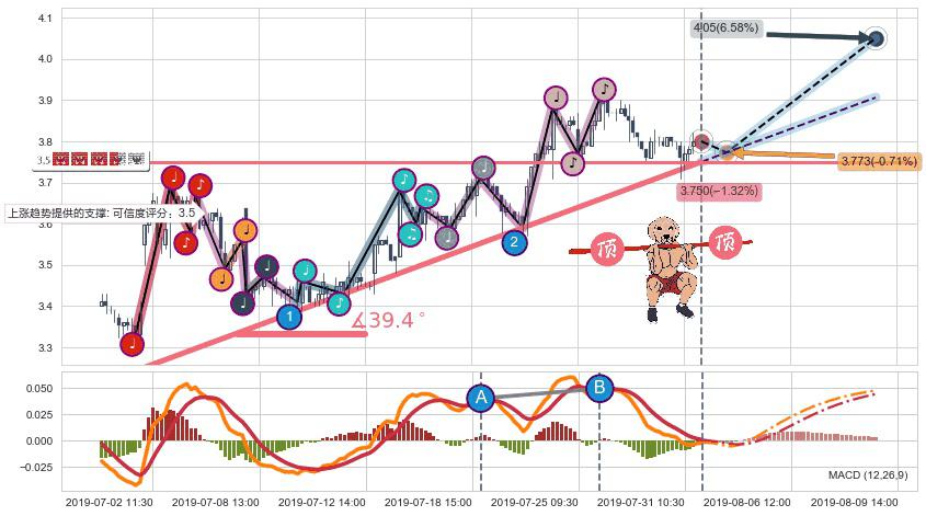 ➣ 预测:2019-08-09 14:00,【继续上扬】稳定目前上涨趋势的前提下,预测价格:4.05