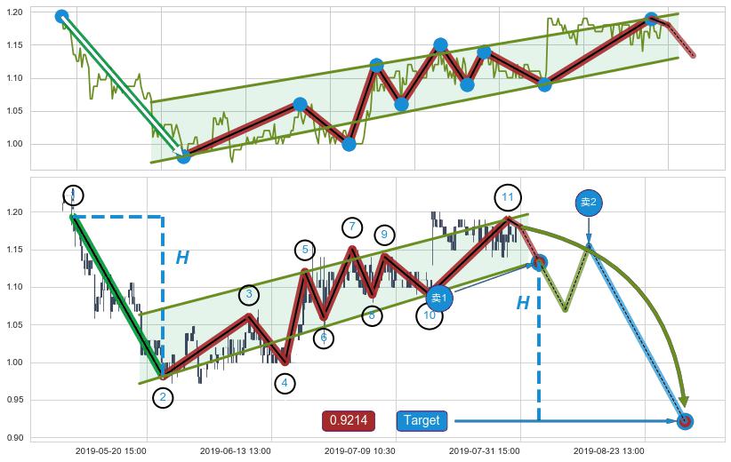 ➣ 最小中继整理跌幅→𝐇: 0.212000 (𝐇旗杆的长度:旗杆起点→顶点)