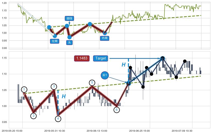 ➣ 【已确认突破】头肩底 起点:05-16:14,突破点:06-19:14,形态共139交易小时