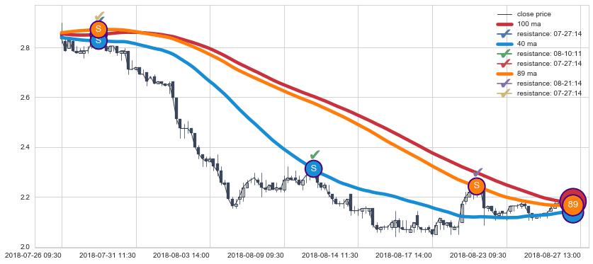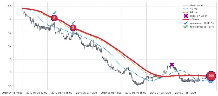 ⚄ 价格在均线遇到阻力后再次向下回落了【较短】距离, 第⑦卖出点 阻力效果【仍需验证】