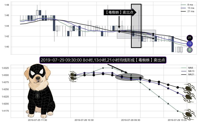 ⚀ 2019-07-29 09:30:00小时显现 8小时-13小时-21小时均线 【毒蜘蛛】卖出点 看空信号,后市看跌,卖出