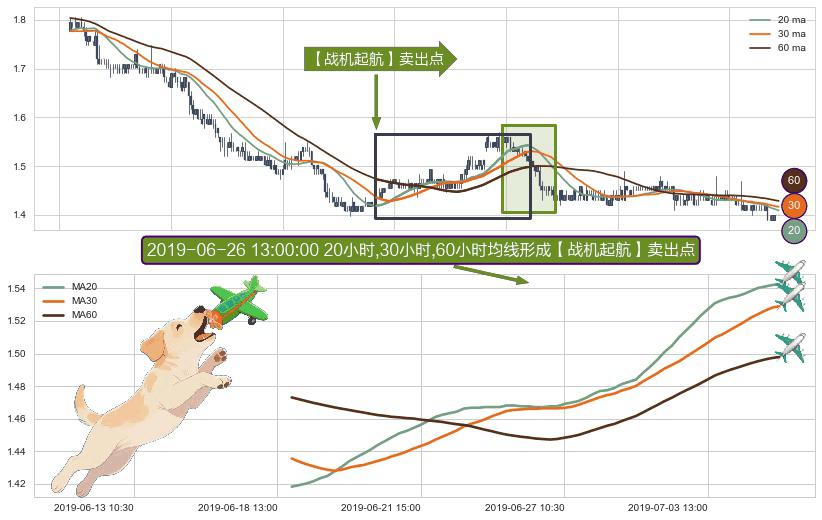 ⚀ 2019-06-18 15:00:00小时-2019-07-05 10:30:00小时显现 20小时-30小时-60小时均线 【战机起航】卖出点 看空信号,后市看跌,卖出