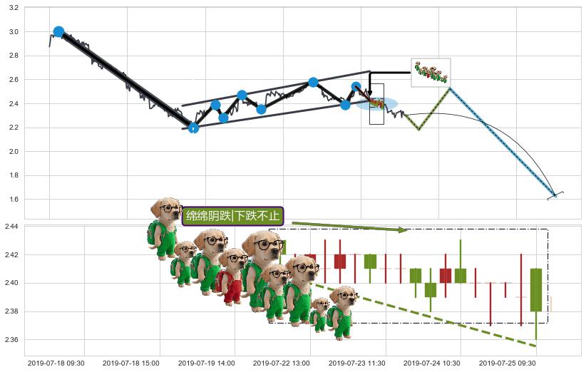 从2019-06-17 15:00至2019-07-31 15:00,共包含187个小时,阶段股价下跌-1.65%,阶段股价变动位移路程比: 1 : 55