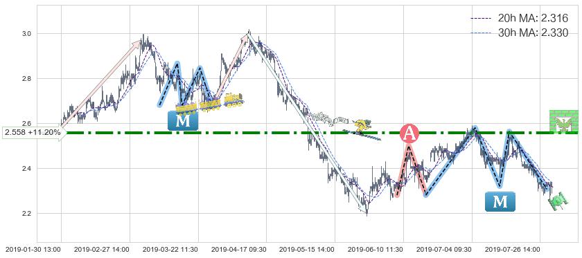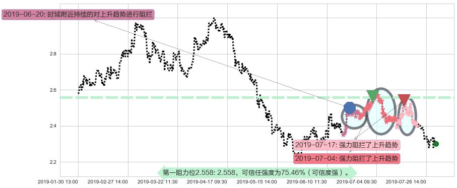 ♘ 阻力价格位2.558,可信任强度75.46%,距离最后交易2019-07-31 15:00形成的收盘价格2.300相差 +11.20%