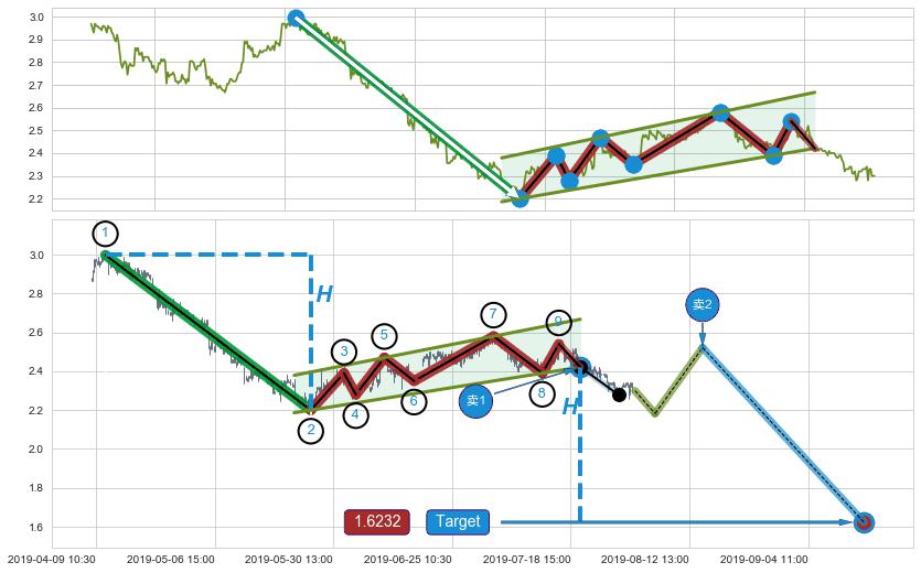 ➣ 最小中继整理跌幅→𝐇: 0.7980 (𝐇旗杆的长度:旗杆起点→顶点)