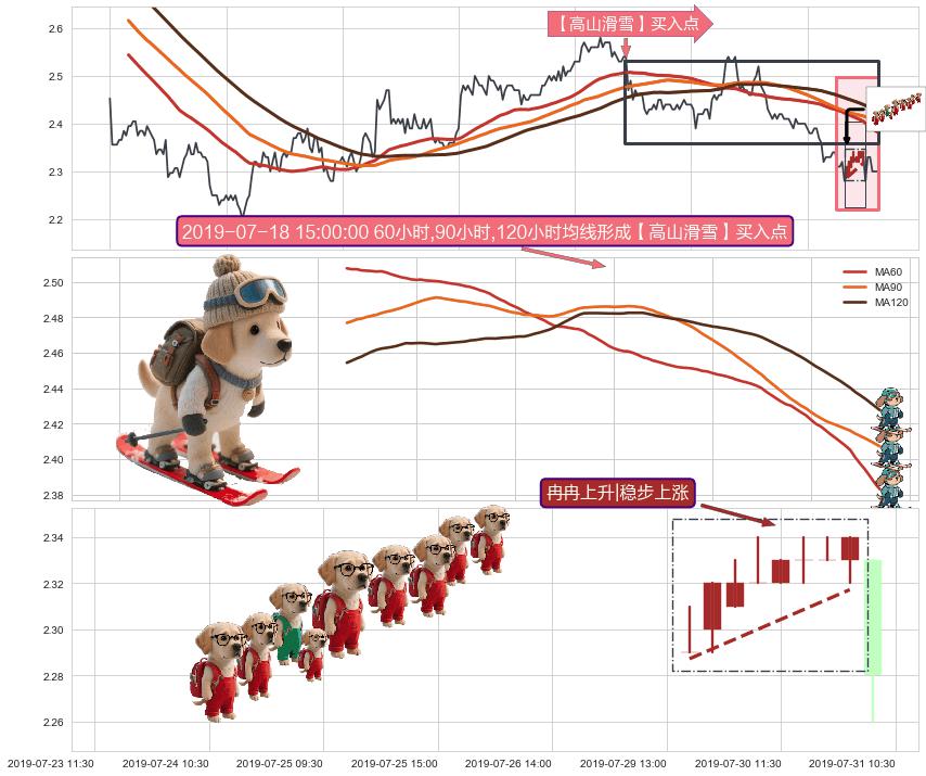 | 3 🅚:两红夹一黑 ➕ 🎢:【高山滑雪】买入点均线组合买入点信号形成后,猜想后续下行结束,持续反弹上涨(均值回复) ☞ 看多信号 ⇥ 【均线】交织【🅚线】⇥ 综合量化分数: 51 | > |