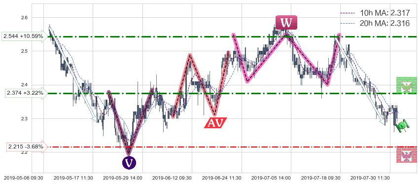 ♘ 支撑价格位2.215,可信任强度54.35%,距离最后交易2019-07-31 15:00形成的收盘价格2.300相差 -3.68%