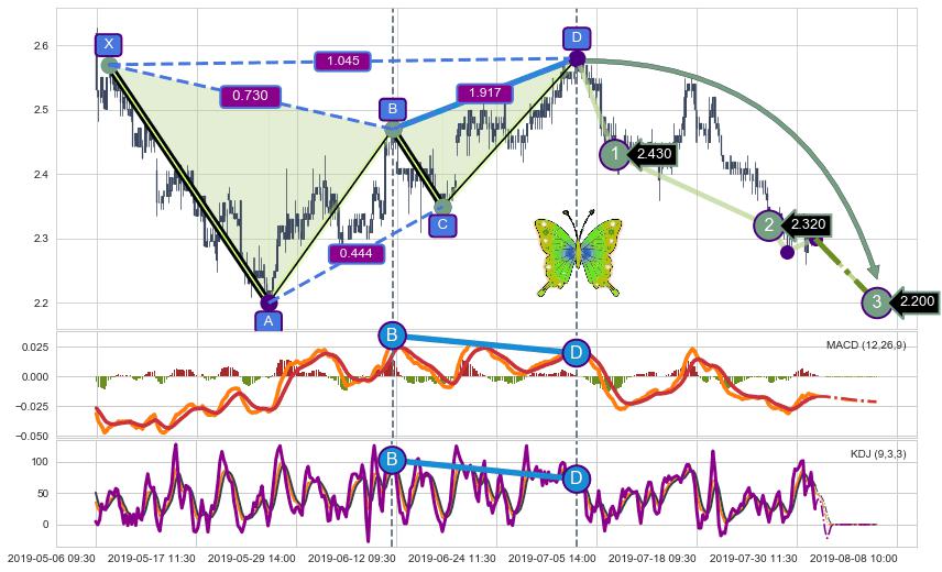 ➣ 已完成【蝴蝶】形态起点X: 05-07:09, 终点D: 07-04:09, 共235交易小时