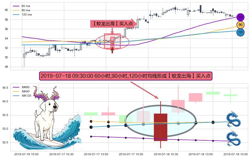 ⚀ 2019-07-18 09:30:00小时显现 60小时-90小时-120小时均线 【蛟龙出海】买入点 看多信号,后市看涨,买入