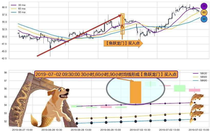 ⚀ 2019-07-02 09:30:00小时显现 30小时-60小时-90小时均线 【鱼跃龙门】买入点 看多信号,后市看涨,买入