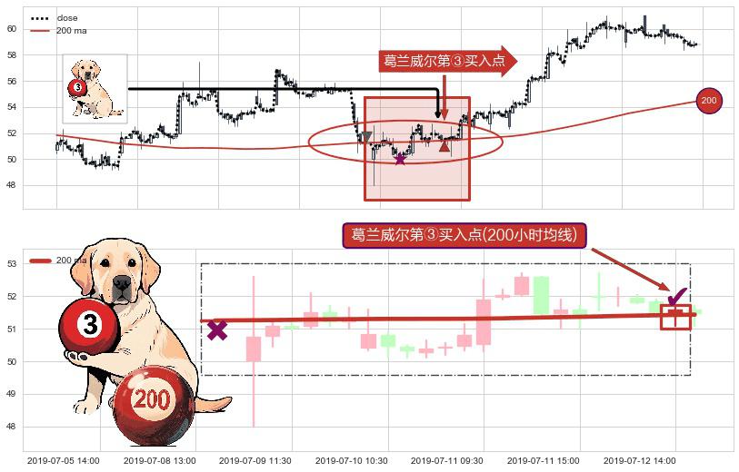 ⚀ 2019-07-12 14:00:00-小时显现 葛兰威尔均线 200小时均线 第③买入点 上升趋势的中继信号,后市看涨,买进信号