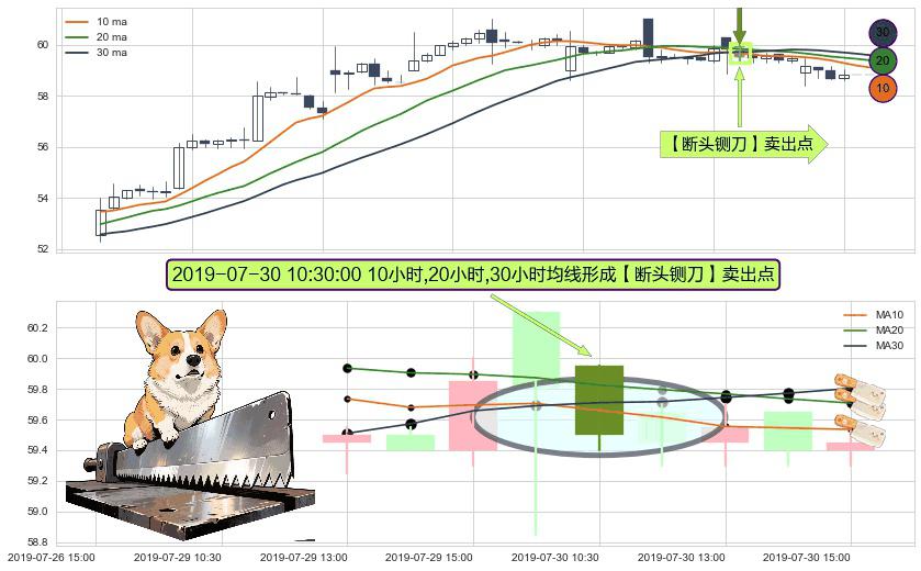⚀ 2019-07-30 10:30:00小时显现 10小时-20小时-30小时均线 【断头铡刀】卖出点 看空信号,后市看跌,卖出