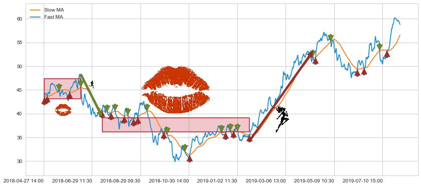 07-13 09:30至01-16 15:00 慢线与快线多次接触,存在上下穿越,有缠绕