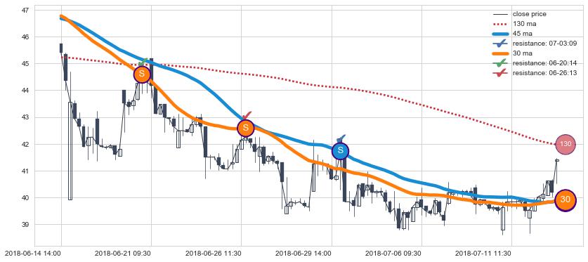 ⚂ 2019-07-30 10:30:00小时突然冒出一根大阴线,一下子下穿三条均线且收盘价收在各条均线之下