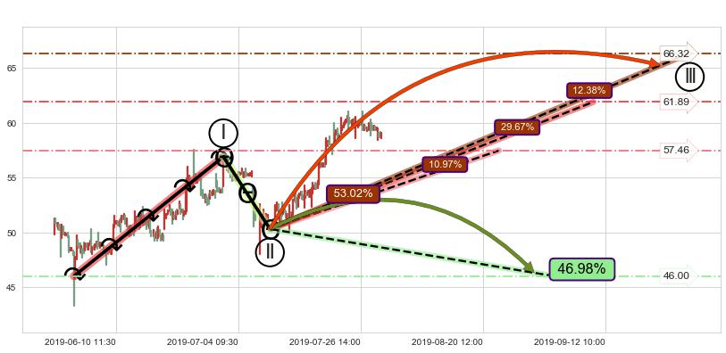 ➣ D点拟合预测价格64.13,距离最后交易收盘价格58.80相差 +9.07%