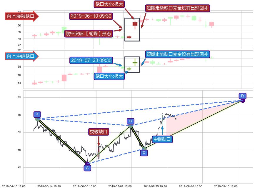 ➢ 跳空突破【蝴蝶】形态关键点后,后续非关键走势也无缺口回补迹象,突破缺口可信度提高