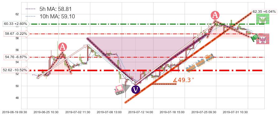 ♘ 阻力价格位60.33,可信任强度60.63%,距离最后交易2019-07-31 15:00形成的收盘价格58.80相差 +2.60%
