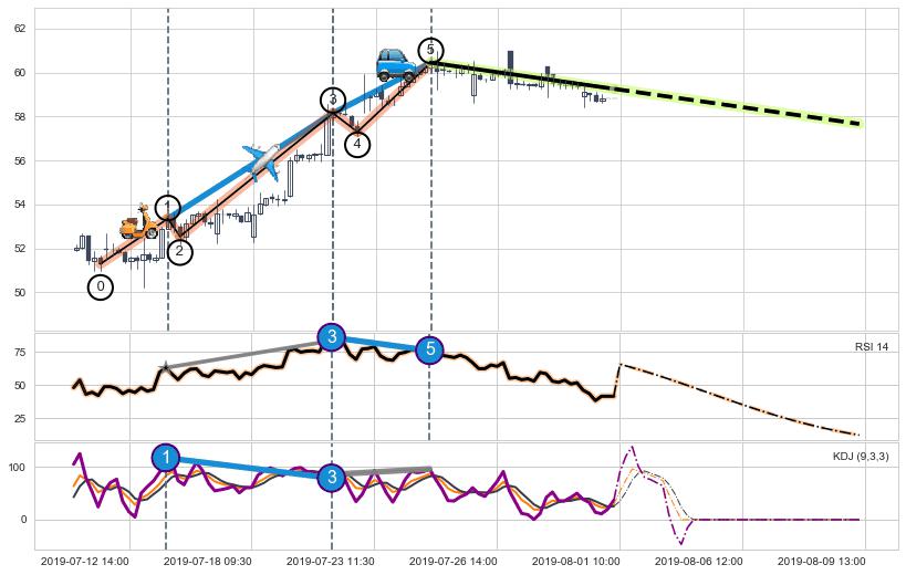 ➣ 第一, 三驱动浪端点:【KDJ】走势出现【常规背离 & 反转信号】背离程度50.02%,背离夹角角度86.7˚,背离程度中等