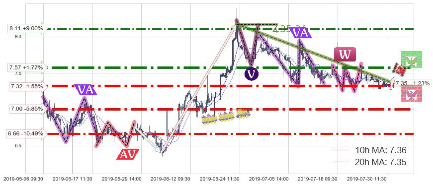 ♘ 阻力价格位7.57,可信任强度85.40%,距离最后交易2019-07-31 15:00形成的收盘价格7.44相差 +1.77%