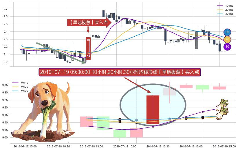 ⚀ 2019-07-19 09:30:00小时显现 10小时-20小时-30小时均线 【旱地拔葱】买入点 看多信号,后市看涨,买入