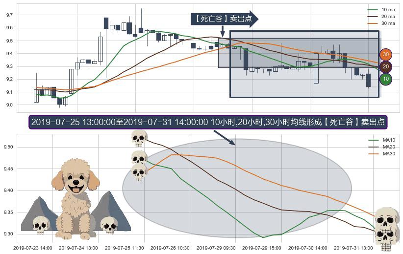 ⚀ 2019-07-25 14:00:00-小时至2019-07-31 14:00:00-小时显现 10小时-20小时-30小时均线 【死亡谷】卖出点 看空信号,后市看跌,卖出