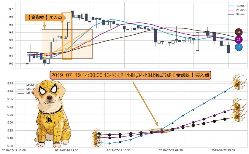 ⚀ 2019-07-19 14:00:00小时显现 13小时-21小时-34小时均线 【金蜘蛛】买入点 看多信号,后市看涨,买入