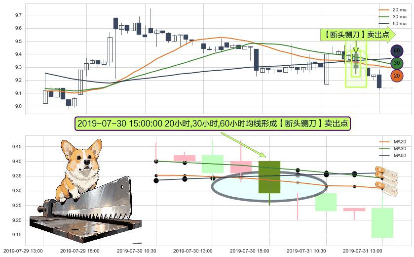 ⚀ 2019-07-30 15:00:00小时显现 20小时-30小时-60小时均线 【断头铡刀】卖出点 看空信号,后市看跌,卖出
