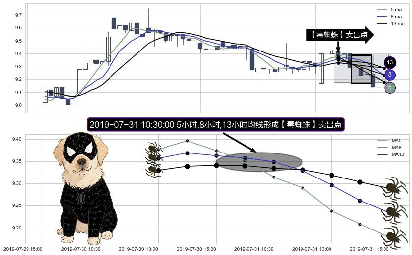 ⚀ 2019-07-31 10:30:00小时显现 5小时-8小时-13小时均线 【毒蜘蛛】卖出点 看空信号,后市看跌,卖出