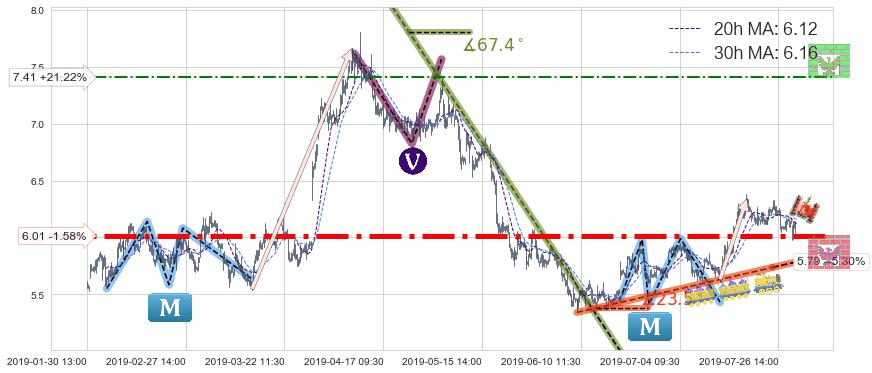 ♘ 支撑价格位6.01,可信任强度86.42%,距离最后交易2019-07-31 15:00形成的收盘价格6.11相差 -1.58%