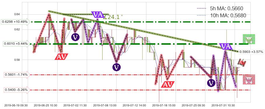 ➢ 预测:2019-08-05 15:00,【小幅反弹】稳定目前下跌趋势的前提下,预测价格:0.5843