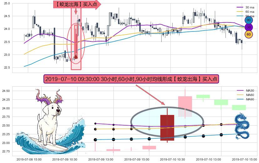 ⚀ 2019-07-10 09:30:00小时显现 30小时-60小时-90小时均线 【蛟龙出海】买入点 看多信号,后市看涨,买入