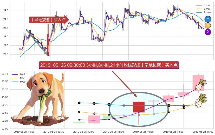 ⚀ 2019-06-26 09:30:00小时显现 3小时-8小时-21小时均线 【旱地拔葱】买入点 看多信号,后市看涨,买入